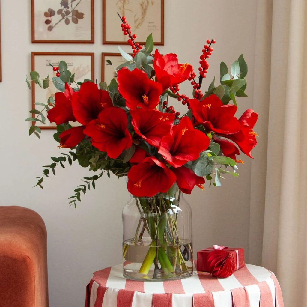 Once you’ve selected your flowers, how do you arrange them? Start by choosing a beautiful vase that complements your other decorations. You can create a centerpiece that draws the eye by mixing different heights and colors. Consider adding greenery like pine or eucalyptus to enhance the festive feel.