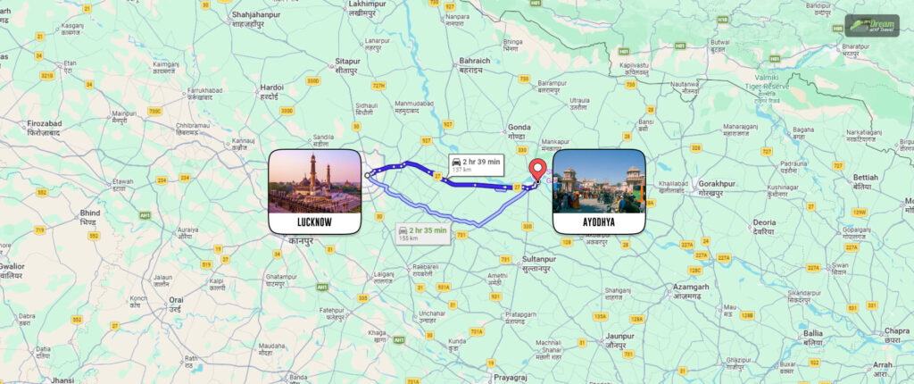 The journey from Lucknow to Ayodhya spans approximately 136 kilometers. If you opt for a car, expect to spend around 2 hours and 36 minutes on the road. When traveling by bus or train, the timeframe can vary. Here’s a quick breakdown of travel options:
